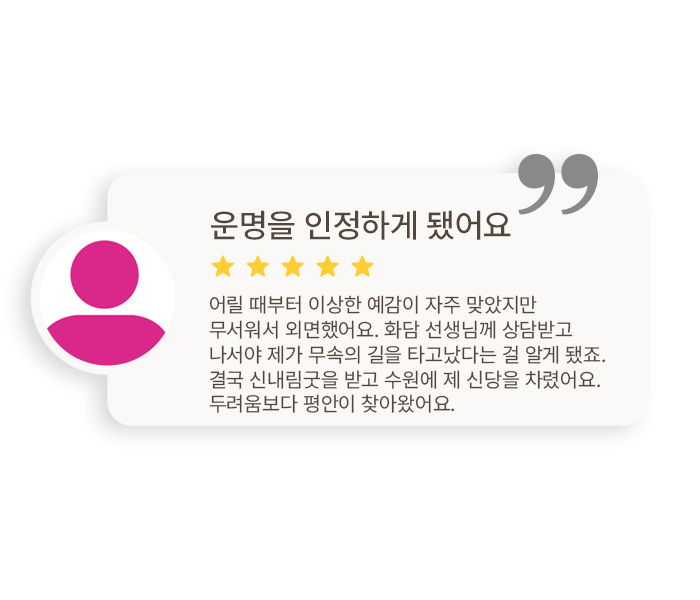 신의 뜻을 전하는 화서당의 상담 이후, 많은 분들이 인생의 전환점을 맞이했습니다. 점사와 의식, 그리고 상담을 통해 삶의 방향을 되찾은 분들의 생생한 이야기가 여기에 있습니다.